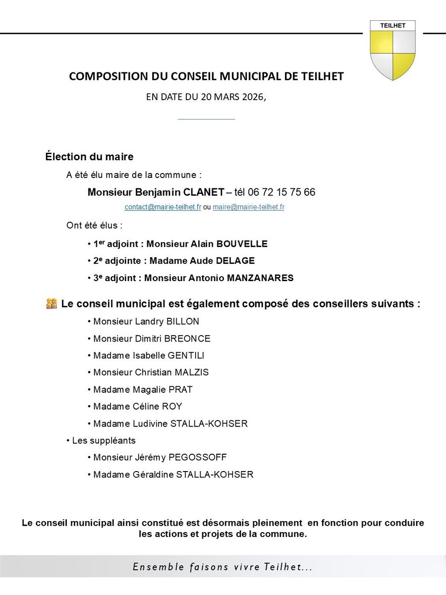 Composition du nouveau conseil municipal de Teilhet