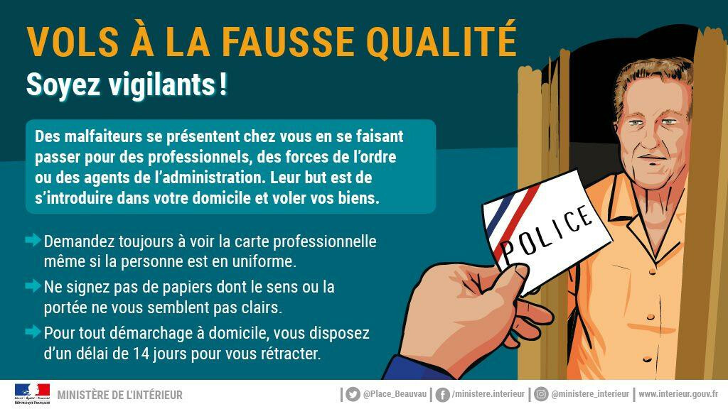 Ce jour sur le secteur de la compagnie de MEAUX, un vol a eu lieu par le biais d'un faux agent des eaux qui déclare vouloir procéder à des contrôle qualité suite à l'épidémie de COVID et se fait lui même interpeller ensuite par de faux policiers (complices) prétextant qu'il est recherché.