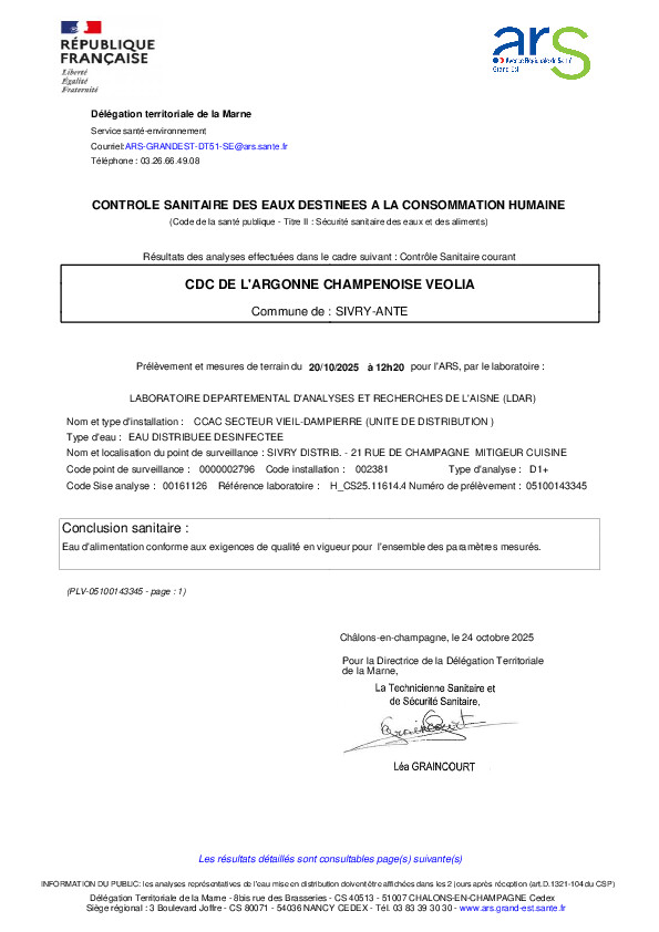 Veuillez trouver, ci-joint l'arrêté préfectoral n° 78-2025-SEC du 9 octobre 2025 abrogeant les restrictions d'usage de l'eau dans le département de la Marne.