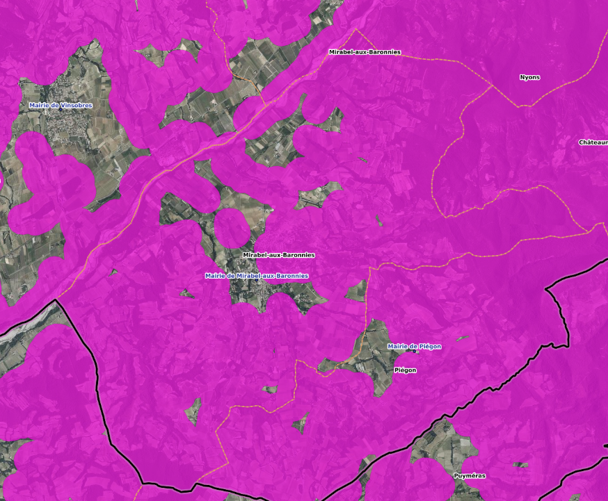 Le zonage ci-dessous permet de rendre compte des espaces concernés par l'OLD sur la commune (en violet).