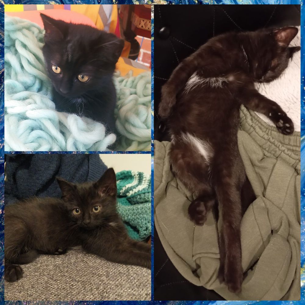 Elle a 6 mois, toute noire, 2 tâches blanches sur poitrine et ventre, bout de la queue cassée.