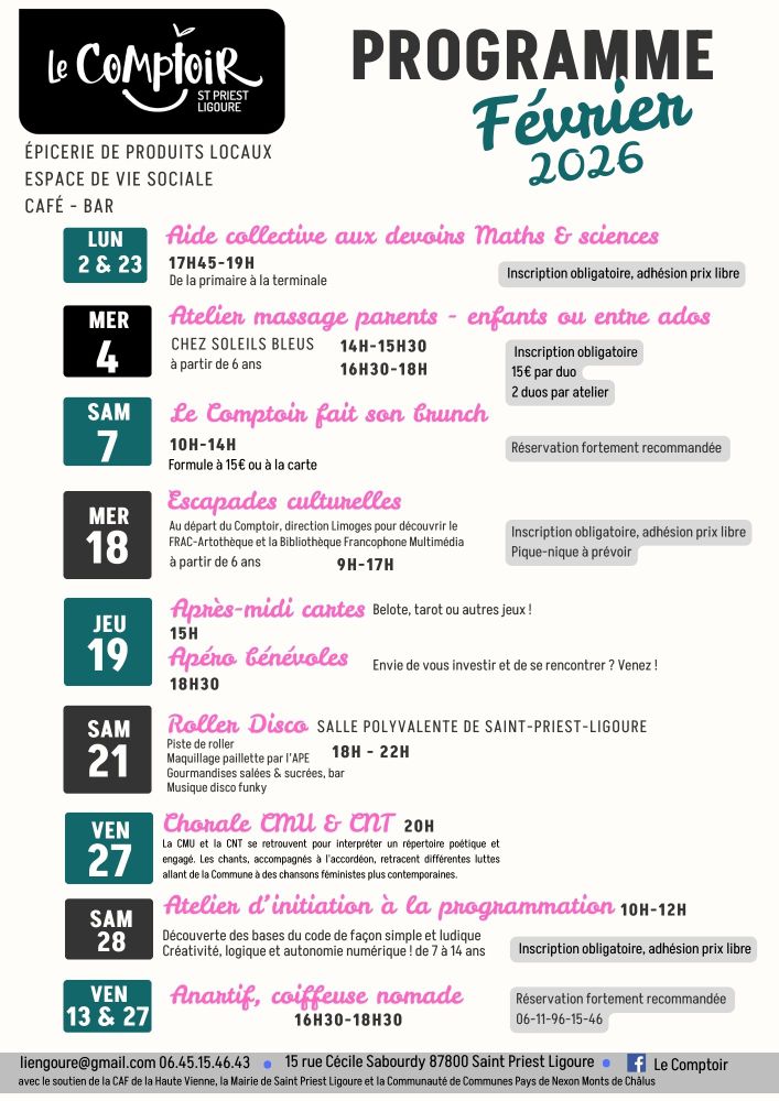 jeudi 19 février de 15h à 17h