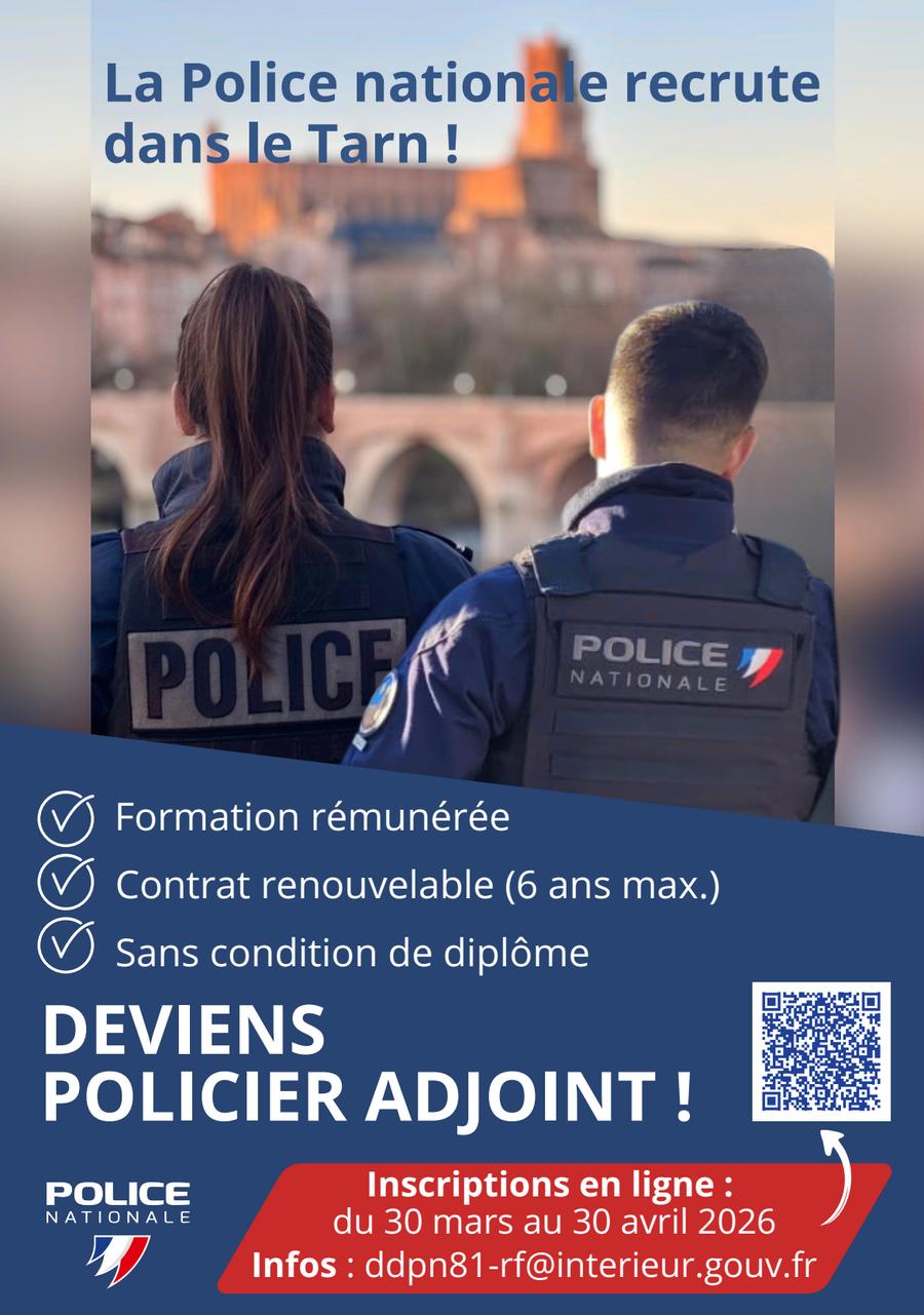 La Police nationale recrute des Policiers adjoints dans le Tarn.