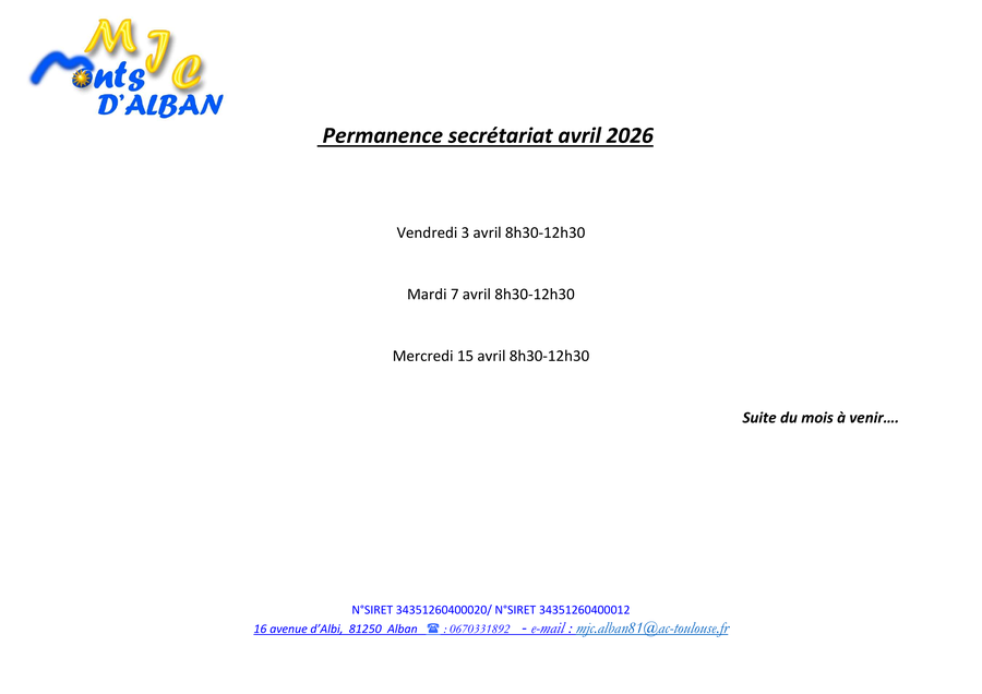- Épreuves "Écrits et sport" le 19/05/2026 à Albi