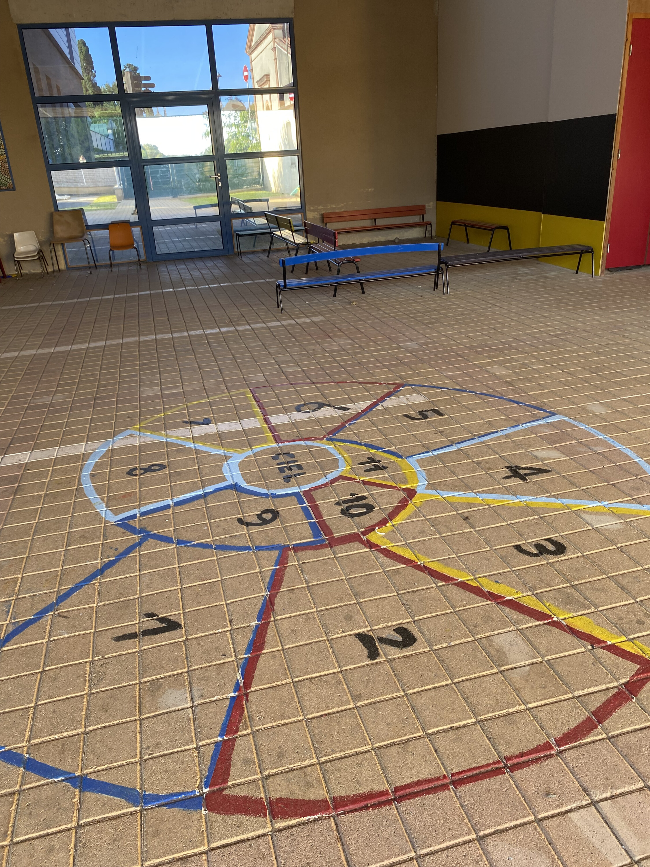 ✅ Installation de 2 tables pour que les enfants puissent jouer, se poser, lire, goûter, discuter.