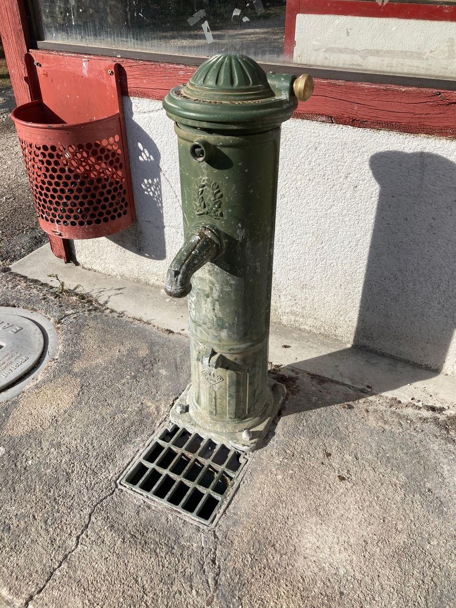 Or, des randonneurs nous ont alertés récemment sur l'état de saleté de la pompe qui a sans doute dû servir à nettoyer du matériel de maçonnerie compte-tenu de la présence de ciment sur le corps de la fontaine.