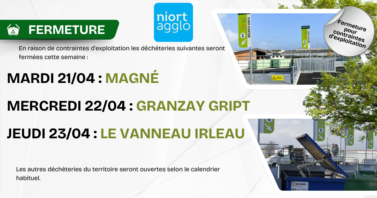 En raison de contraintes d’exploitation, certaines déchèteries seront fermées :
