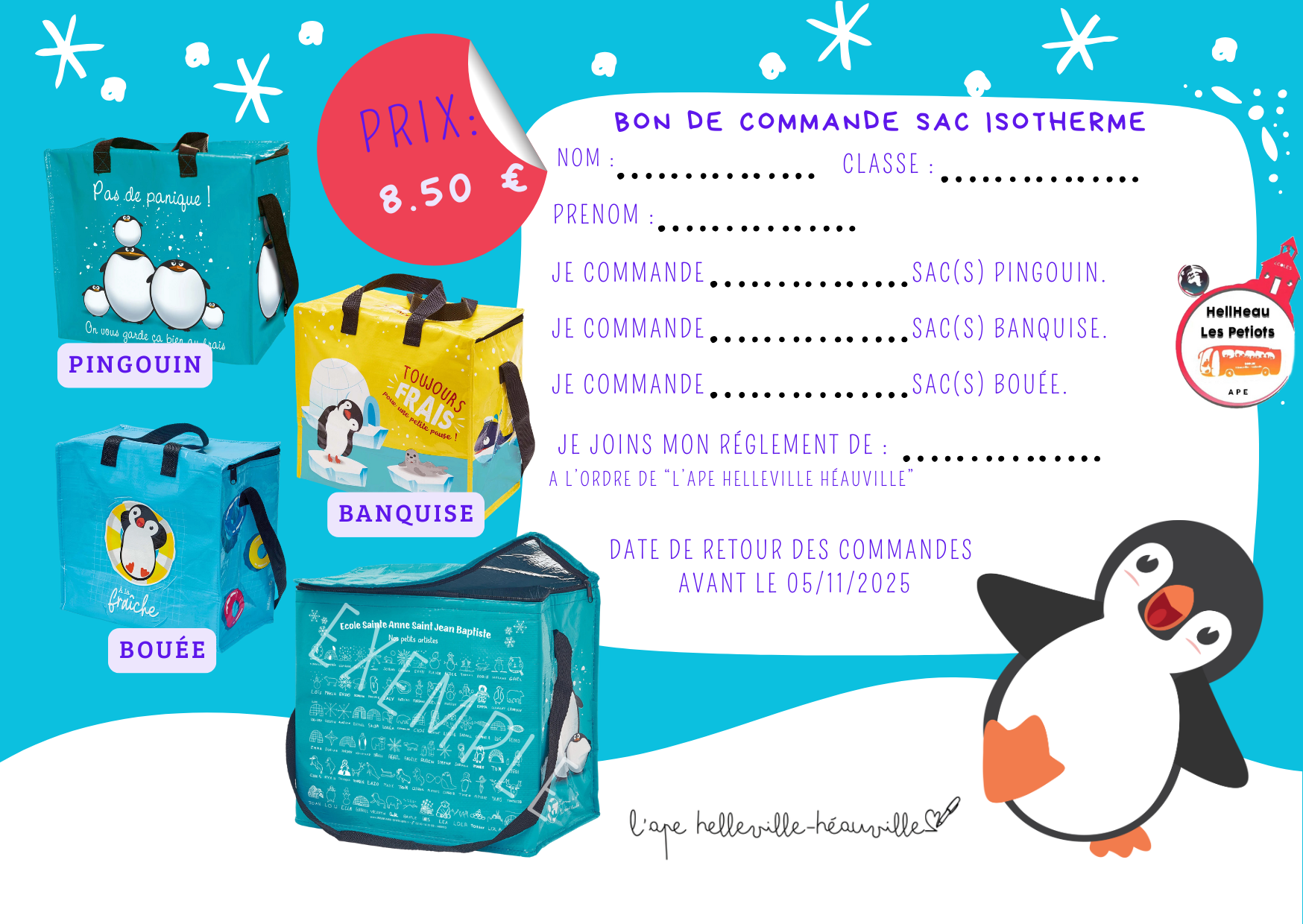 En parallèle de notre vente annuelle de chocolat de la Biscuiterie de Sainte-Mère-Église, nous vous proposons des glacières personnalisées avec les dessins des enfants du RPI Helleville-Héauville. ❄️