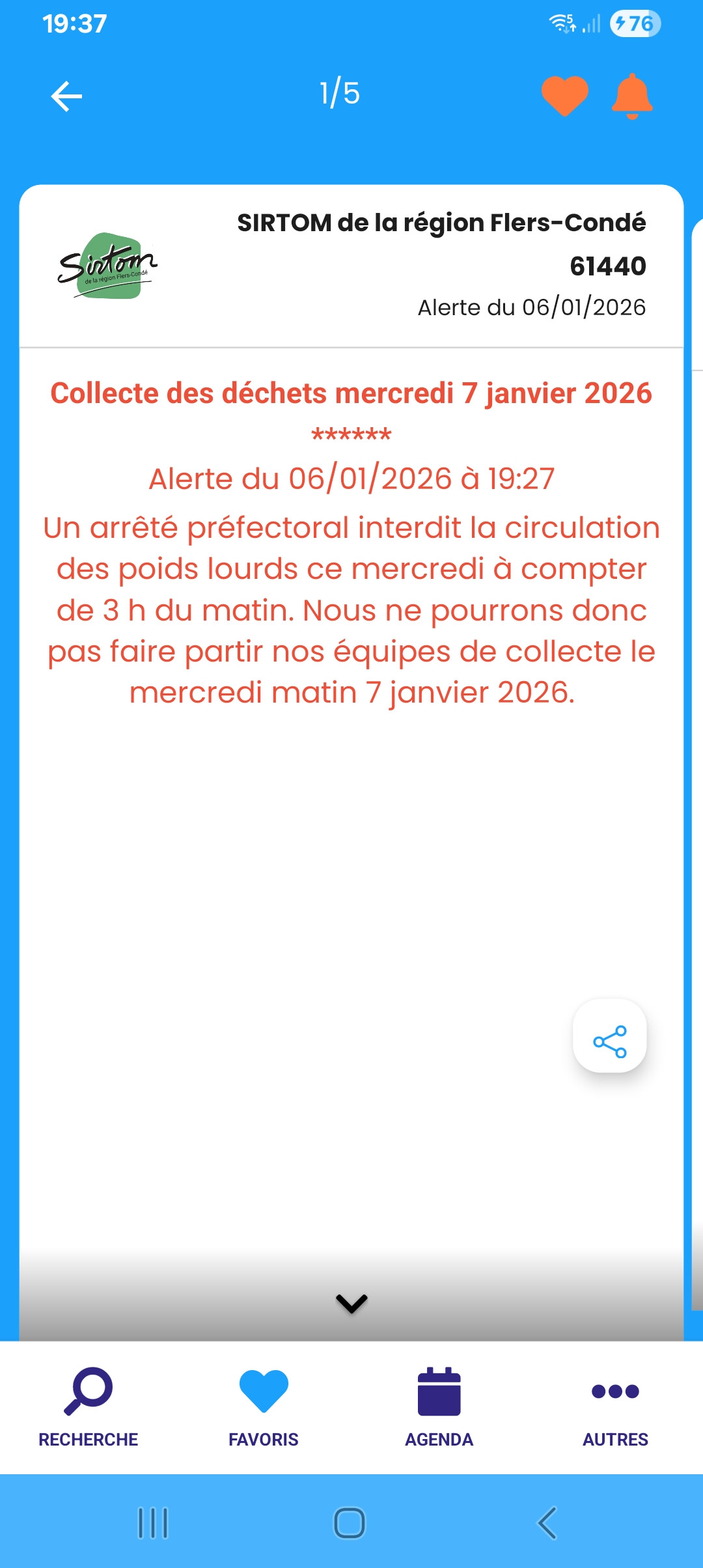 Alerte du 07/01/2026 à 15:31