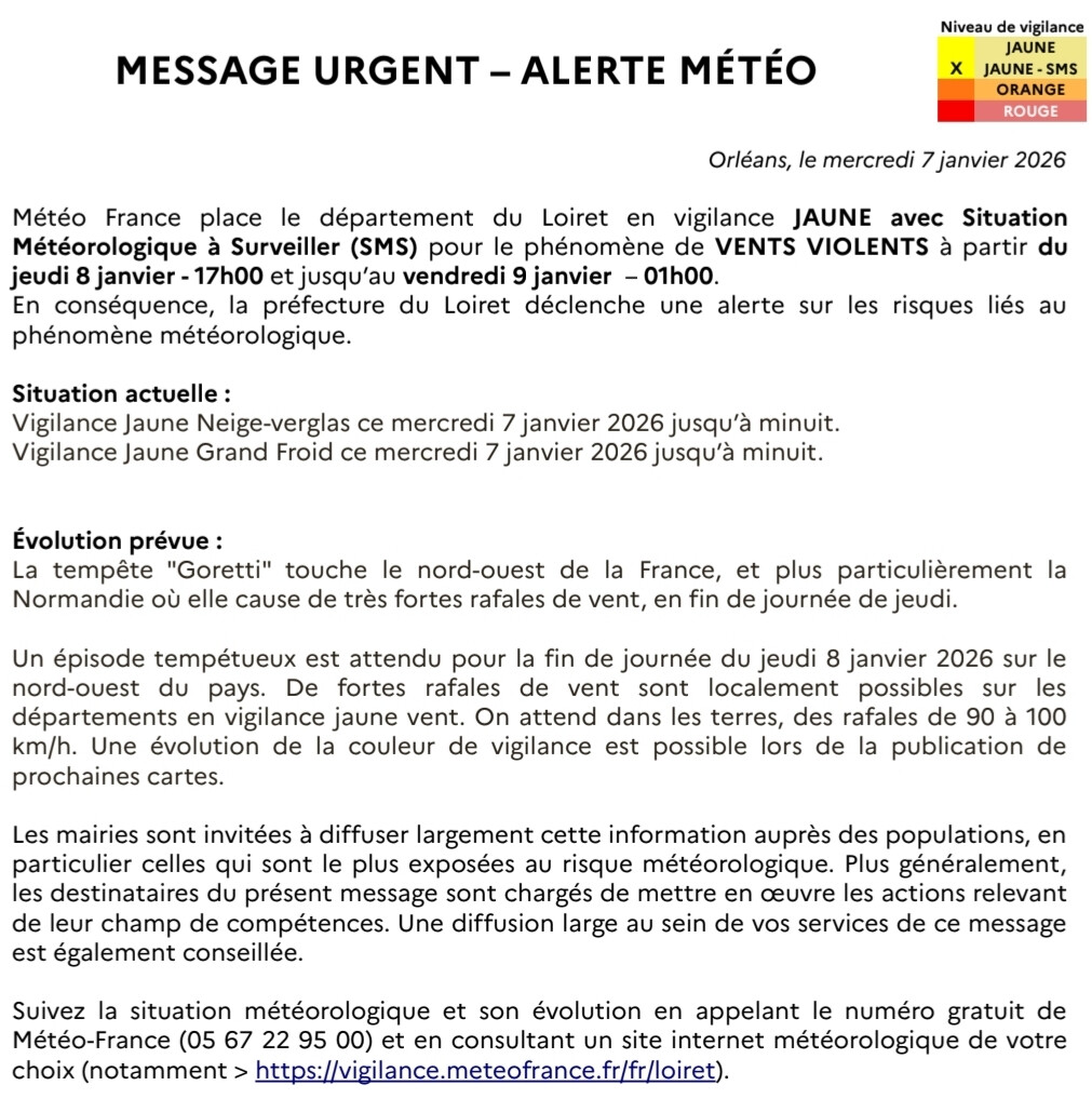 vigilance jaune pour vents violents du jeudi 8 à 17h00 jusqu'au vendredi 9 janvier 1h00.