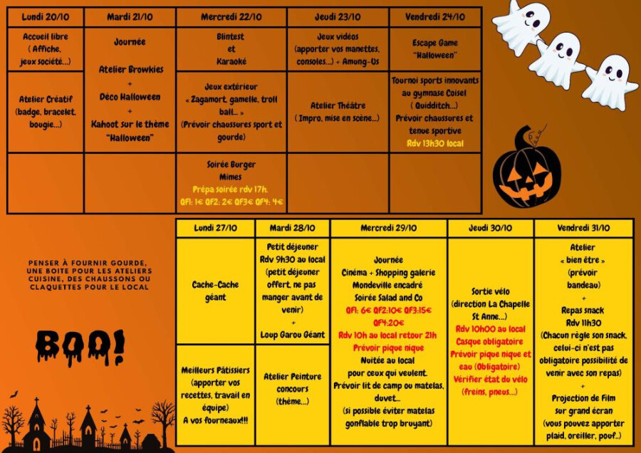 N'oubliez pas d'incrire vos enfants au local jeunes pour les vacances d'automne !