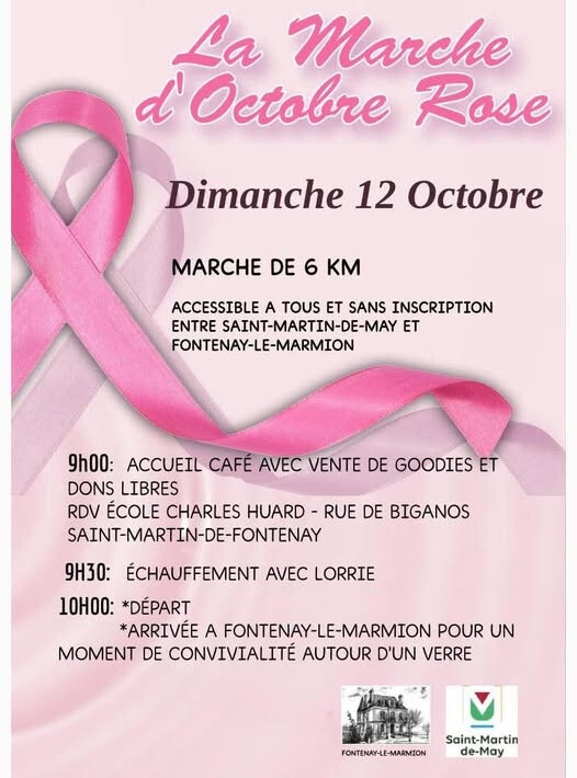 Saint Martin de May et Fontenay le Marmion organisent une marche Rose le dimande 12 octobre.