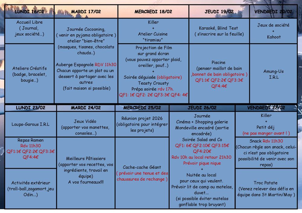 Voici le programme des vacances d'hiver pour le local jeunes de Saint-Martin-de-May.