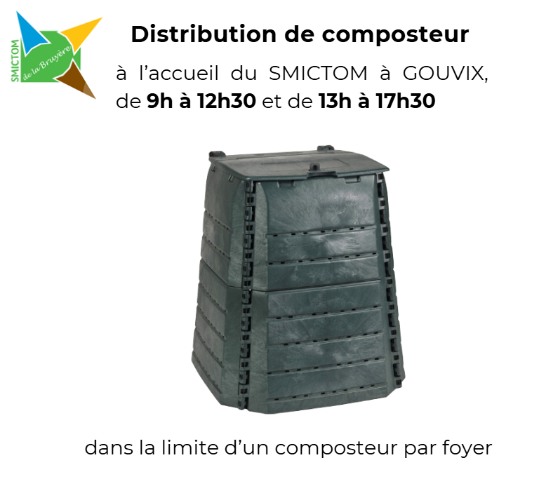 Mardi 28 avril le SMICTOM organise une distribution de composteurs sur le site de GOUVIX.