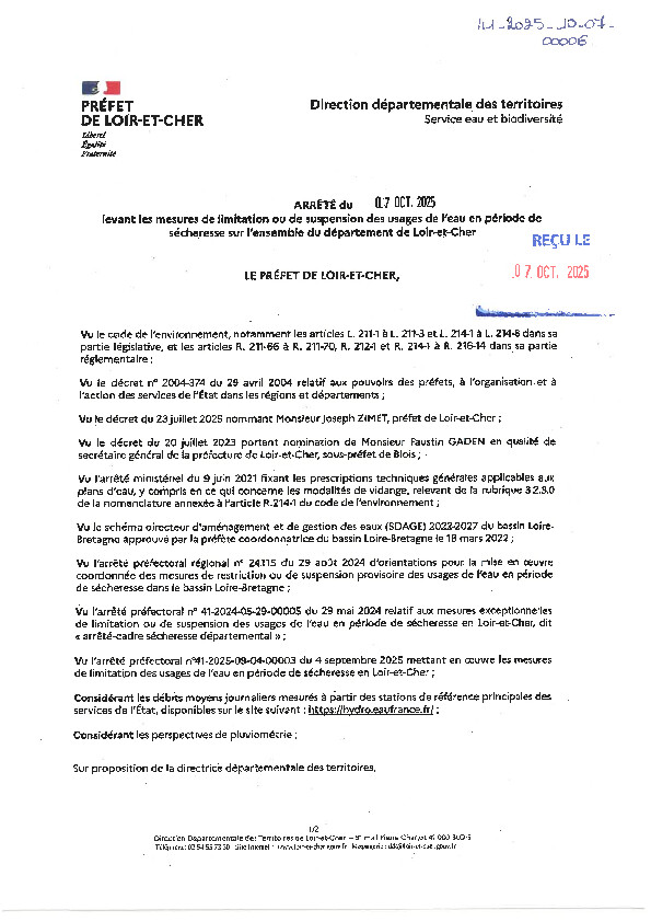 Alerte publiée le 07/10/2025
