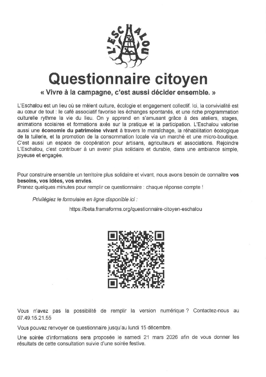 💻 Questionnaire en ligne : https://beta.framafroms.org/questionnaire-citoyen-eschalou