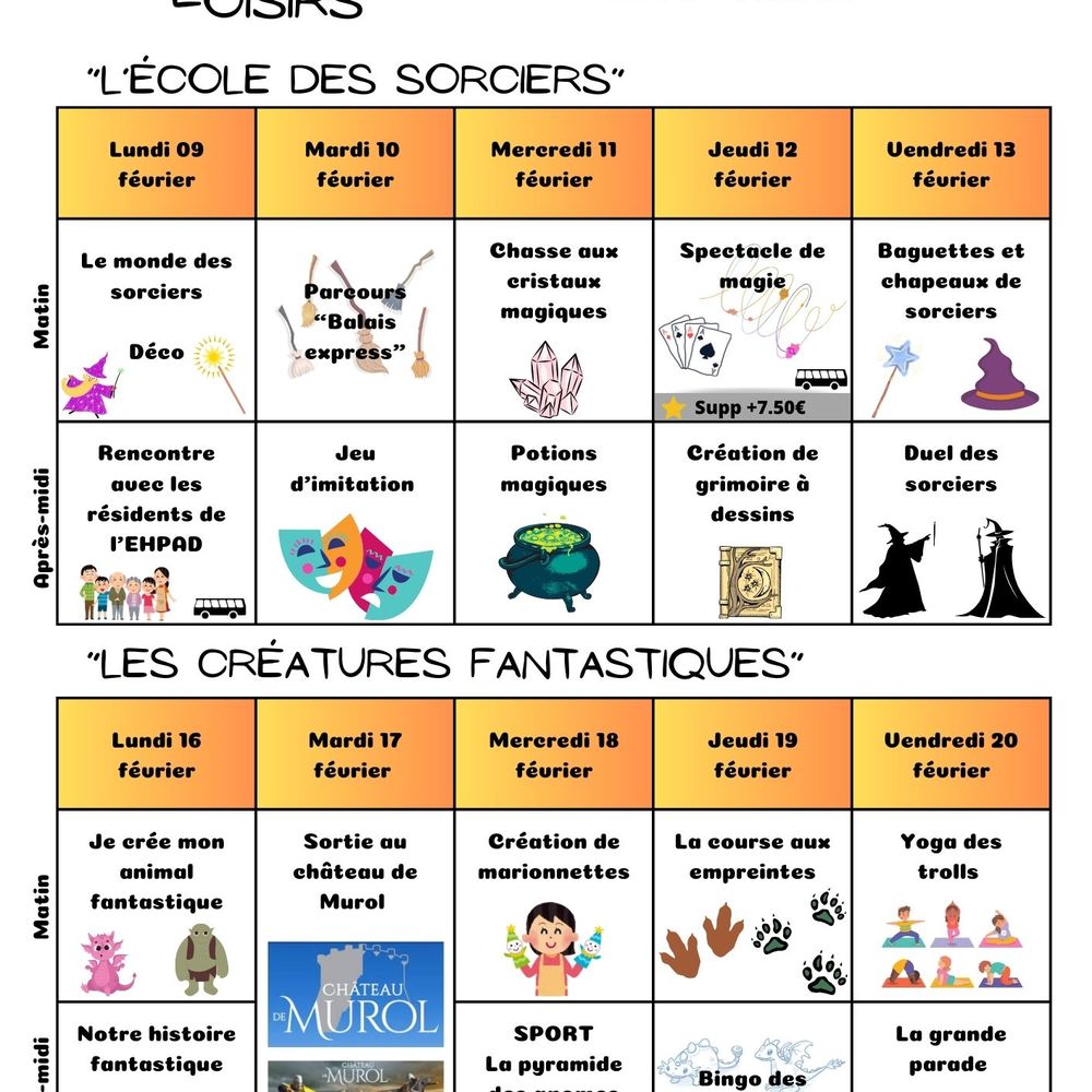 -Pour les 8/11 ans : du mercredi 18 au vendredi 20 février 2026