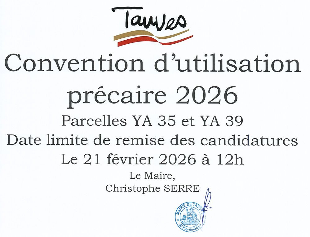 Avis - Candidature - Utilisation précaire 2026 YA 35 et YA 39