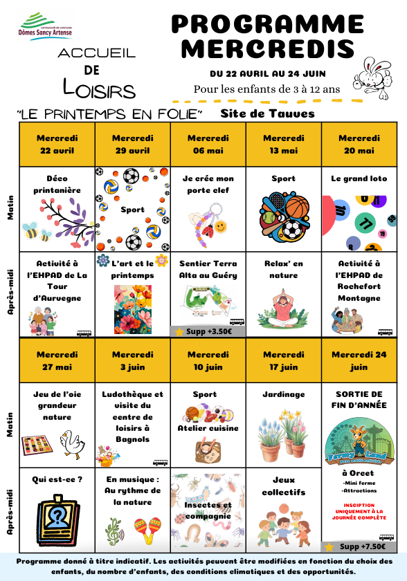 Renseignements sur la démarche et les tarifs sur le dépliant joint.