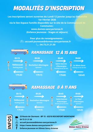 Comme vous le savez, les inscriptions sont possibles via votre Espace Famille ou sur le lien accessible depuis le site de la Communauté de Communes : www.domes-sancyartense.fr (Il faut que le dossier soit complet, accompagné des documents demandés et validé par nos services pour que vous ayez accès aux inscriptions).