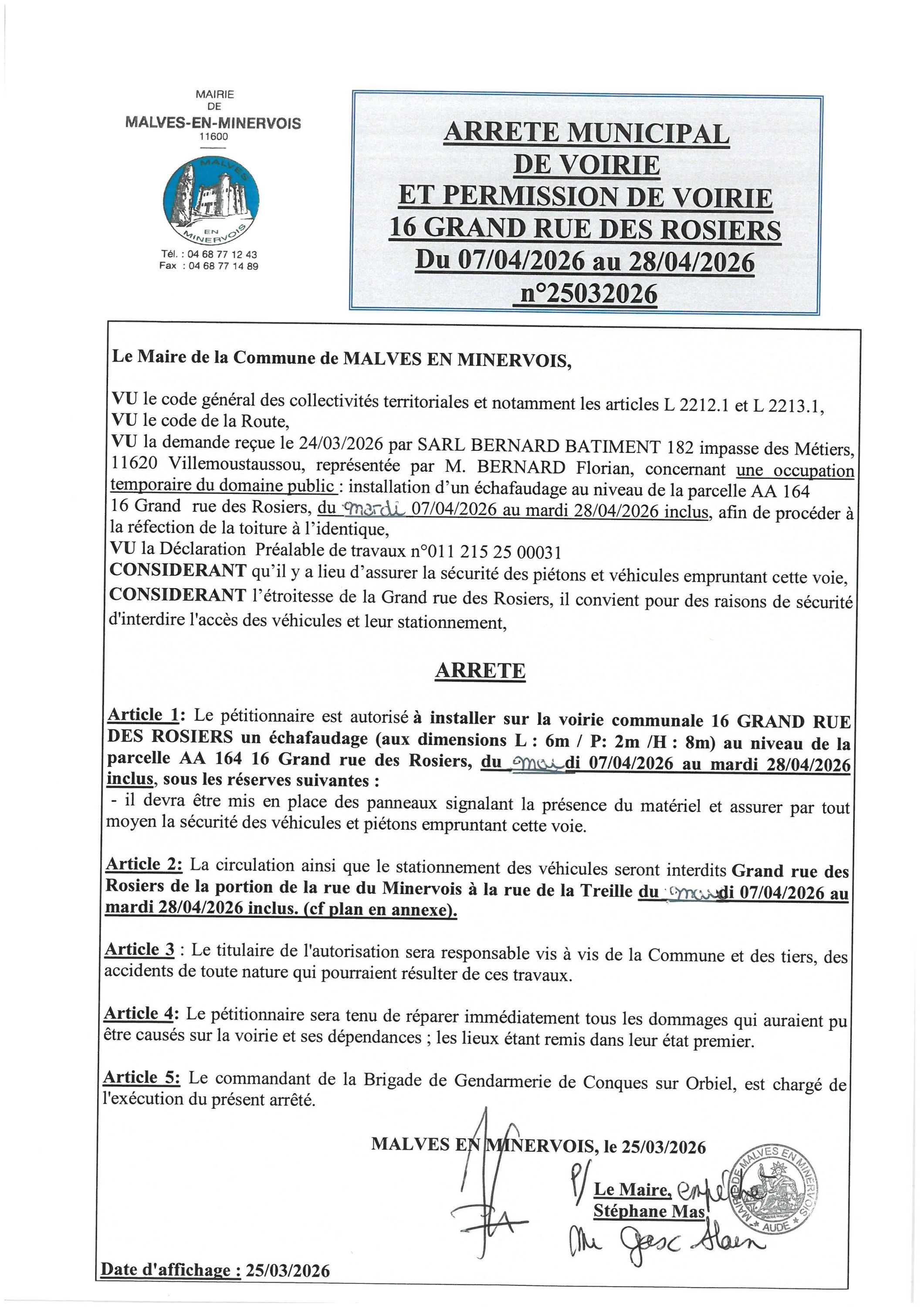 par arrêté du 03 mars 2026.