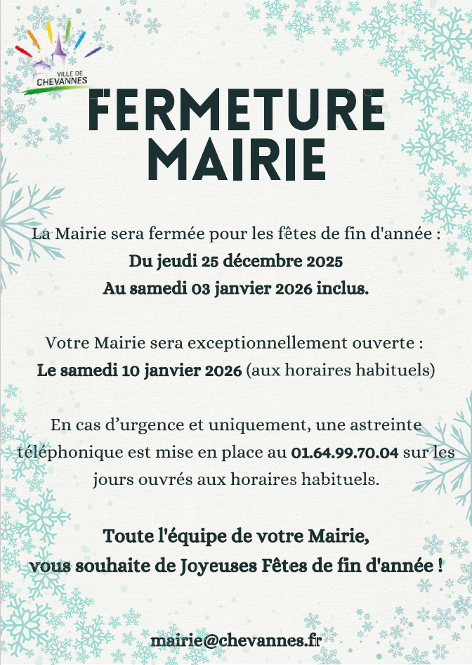 01 64 99 70 04 mairie.de.chevannes@wanadoo.fr http://www.chevannes.fr/