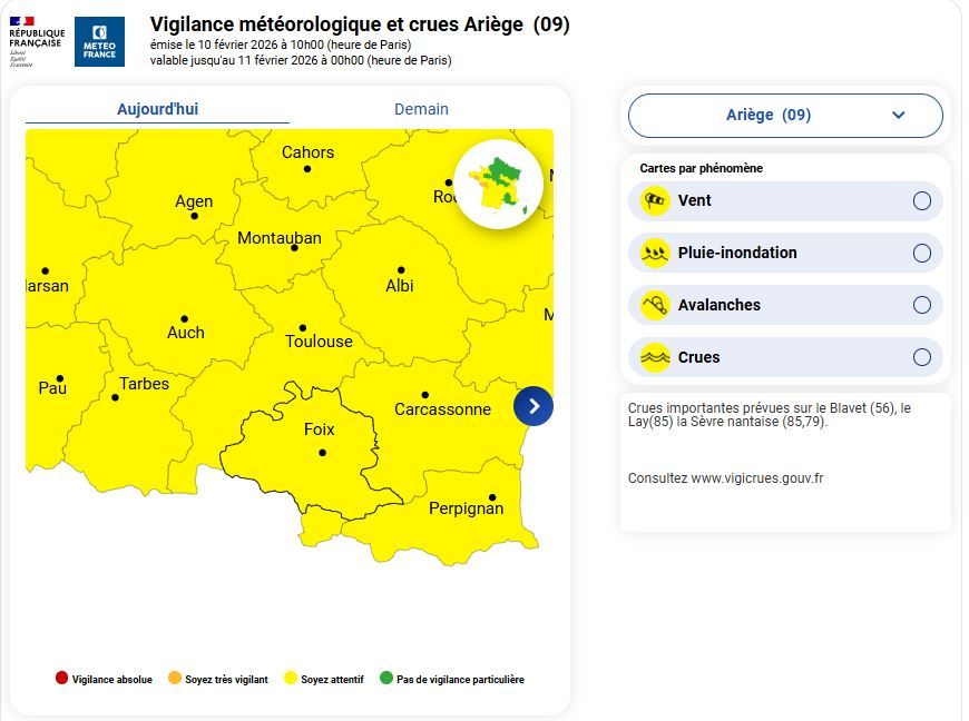 Le préfet de l'Ariège vous invite à etre vigilants et à prendre les mesures de sauvegarde nécessaires.