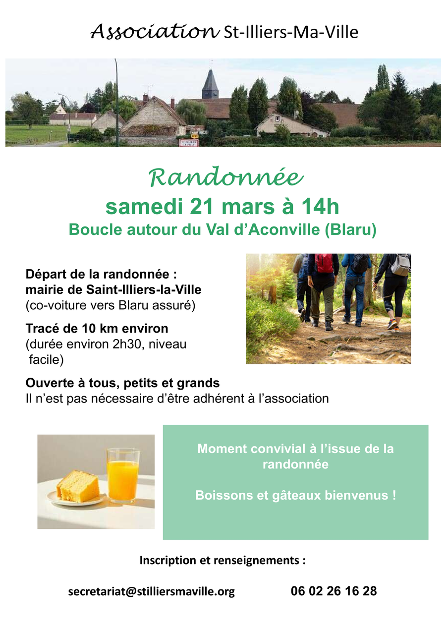 L'association Saint-Illiers-Ma-Ville vous propose une randonnée le samedi 21 mars.