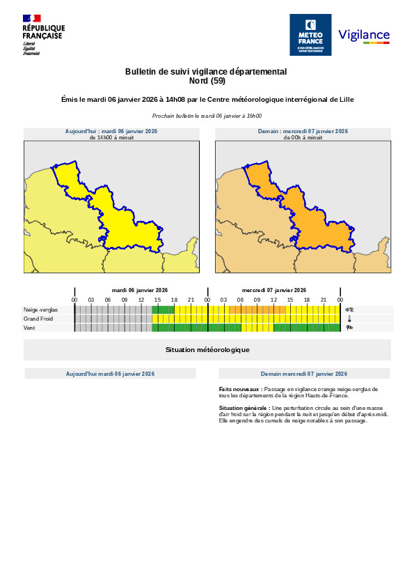 En effet, à l'approche de la tempête "GORETTI" qui circule en Manche et en l'état actuel des prévisions, le département du Nord sera placé en vigilance pour "vents violents" dans les conditions suivantes :