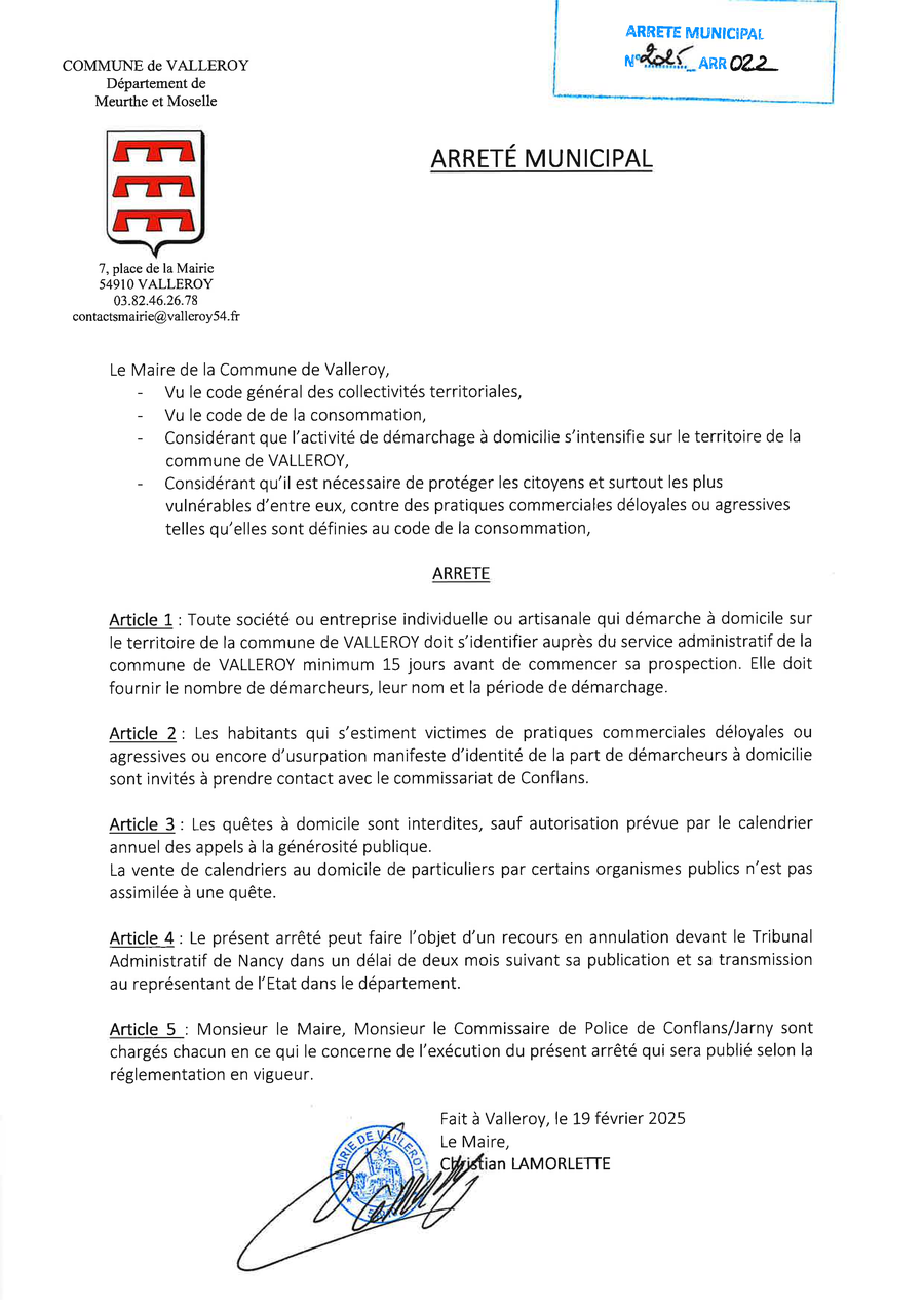 On nous signale des personnes qui effectuent du démarchage à domicile à VALLEROY.