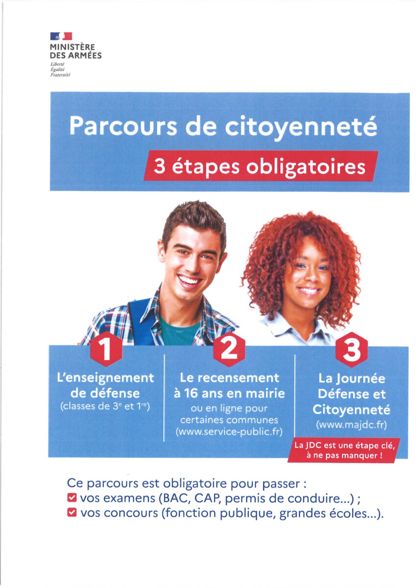 Tout citoyen français âgé de 16 ans doit se faire recenser à la mairie de son domicile entre ses 16 ans et 16 ans et trois mois. En respectant ce délai légal : Recensé à 16 ans : – il sera convoqué vers 17 ans et 3 mois (au-delà compter 9 mois après la date de recensement) à la journée défense et citoyenneté (JDC) et sera en règle vis-à-vis du service national (Certificat de participation obligatoire pour la délivrance du permis de conduire) ; – sera inscrit sur les listes électorales à ses 17 ans ans et 5 mois ; […]