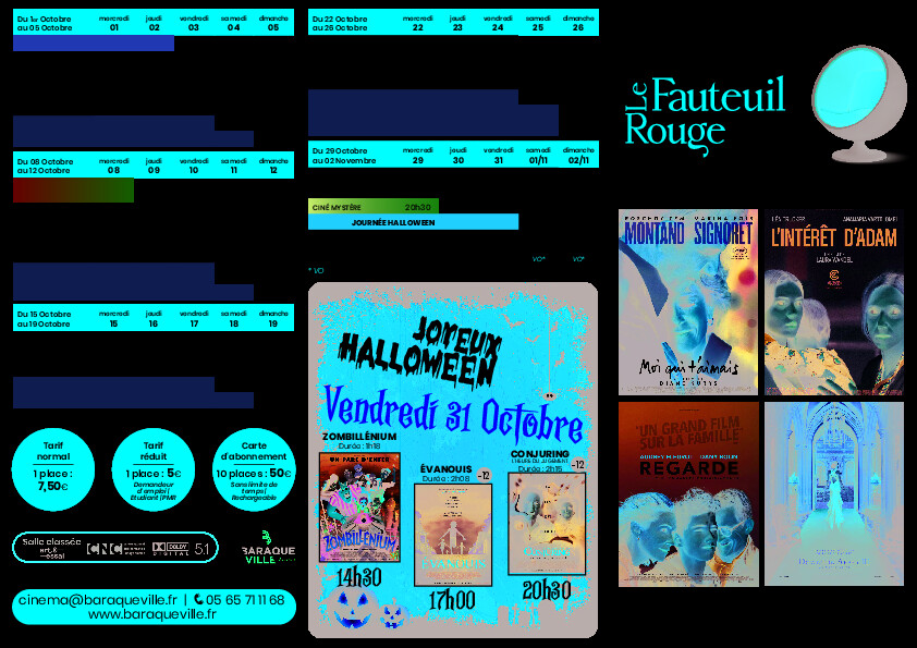 Du cinéma aussi avec l’adaptation du roman de Nicolas Mathieu « Connemara », un film sur le harcèlement scolaire « TKT » , 2 films sans pathos sur l’annonce et la découverte de la maladie « Regarde » et « Nino », un biopic sur Signoret et Montand « Moi qui t'aimais » ; une journée Halloween et un Ciné Mystère pour bien finir le mois.