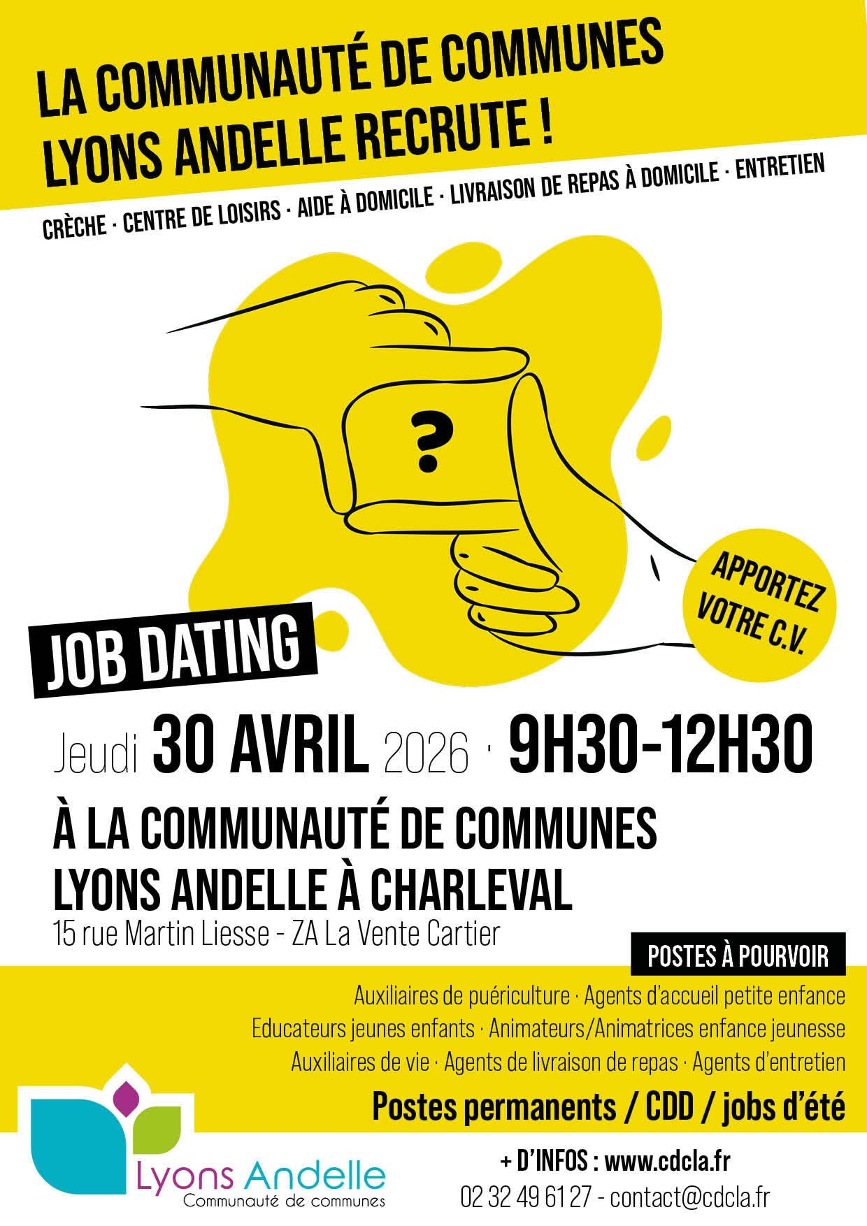 La Communauté de communes Lyons Andelle organise un job dating dédié aux métiers des services à la personne :