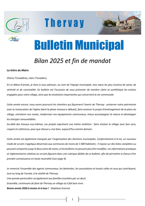 Le bulletin municipal est disponible ci-dessous, sur le site internet de la commune (thervay.fr) et sera prochainement dans vos boites aux lettres !