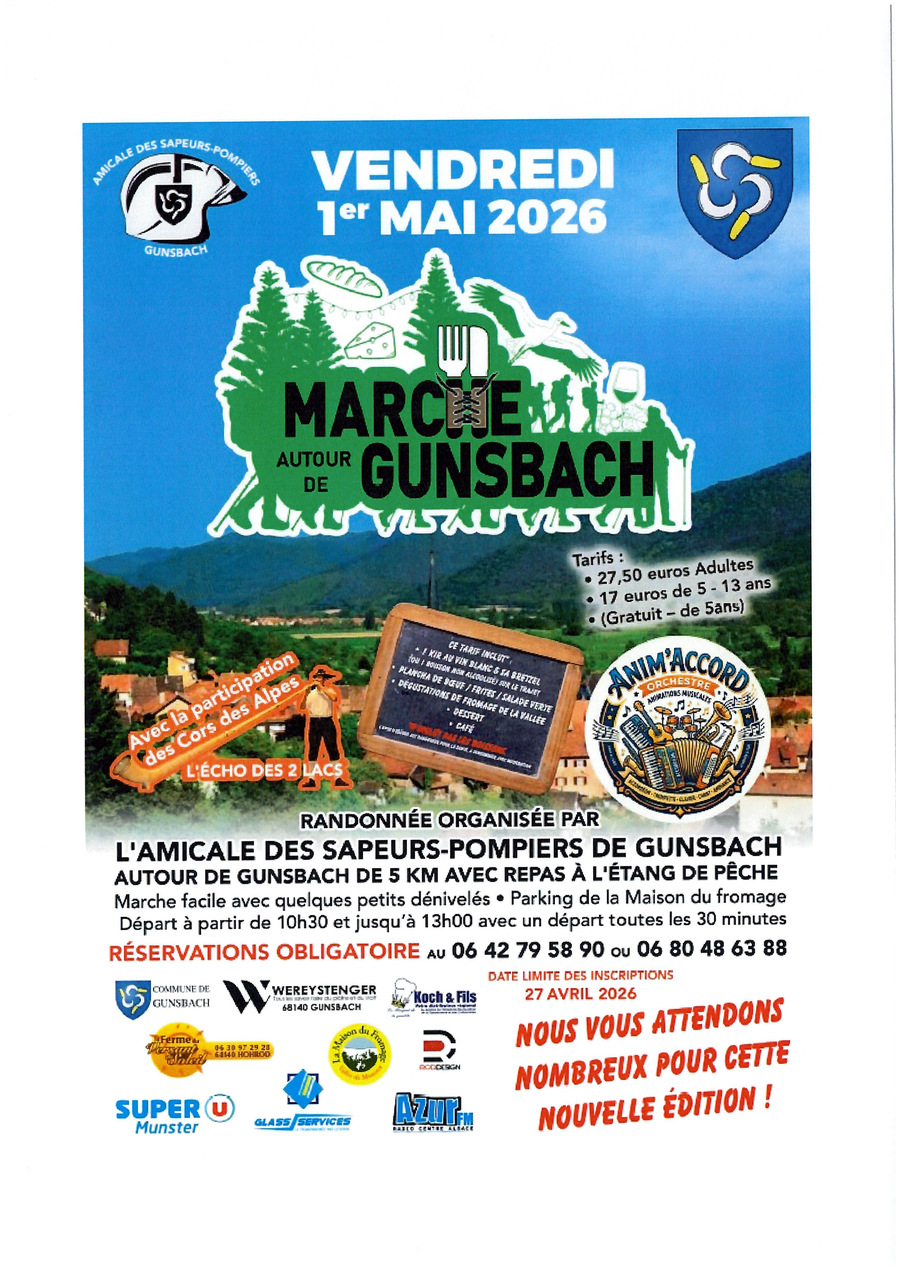 L'Amicale des Sapeurs Pompiers de Gunsbach vous invite à une randonnée autour de Gunsbach le Vendredi 1er Mai 2026