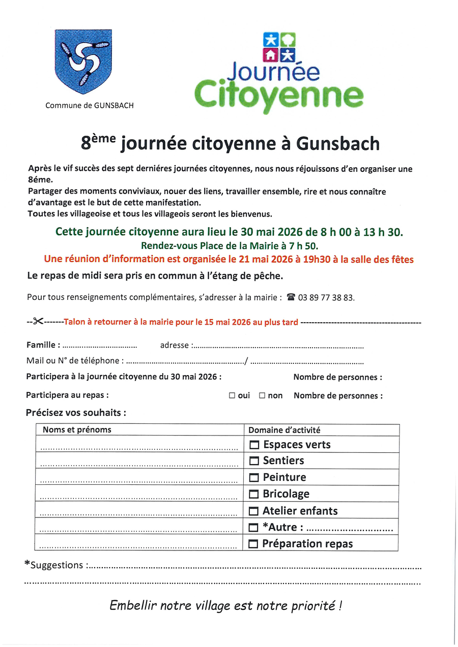 La 8ème journée Citoyenne aura lieu le 30 mai 2026 de 8h00 à 13h30