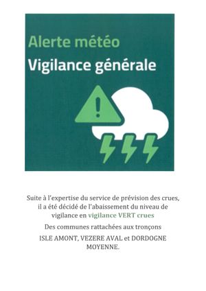 En cas de difficulté d'accès au site de Vigicrues, les informations sont publiées régulièrement sur le site internet de la préfecture => https://www.dordogne.gouv.fr/Actions-de-l-Etat/Securite-et-protection-de-la-population/Vigilance-Dordogne/VIGICRUES-Fevrier-2026