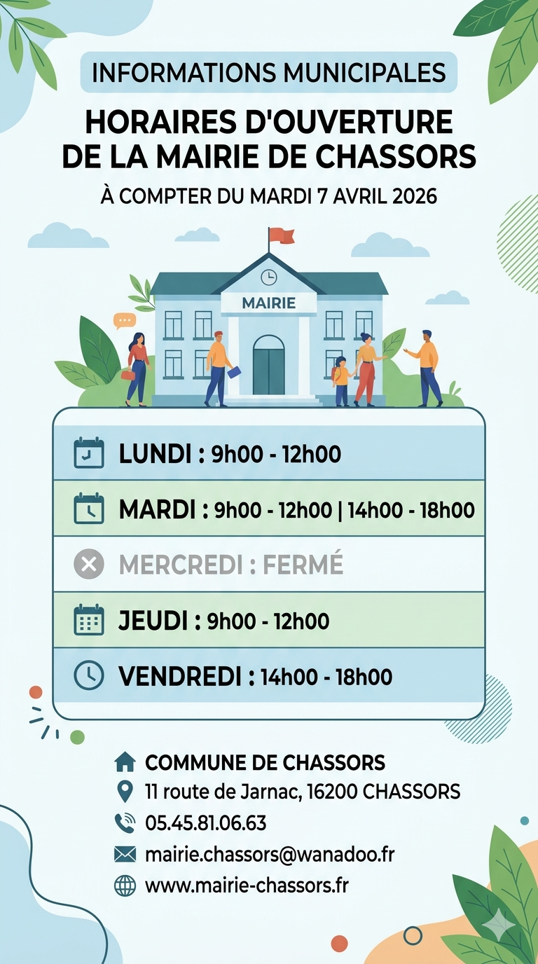 Nouveaux horaires à compter du mardi 7 avril 2026