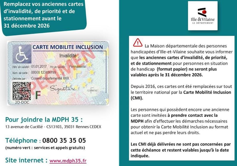Si vous possédez encore une ancienne carte, pensez à contacter la MDPH dès maintenant pour effectuer les démarches et éviter toute difficulté dans l’accès à vos droits à partir de 2027.