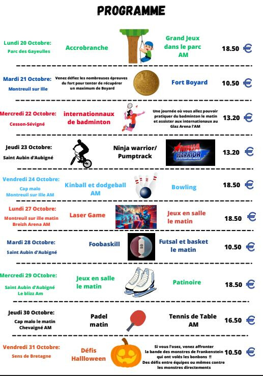 Tarif unique : 15 ⏠pour lâensemble du programme