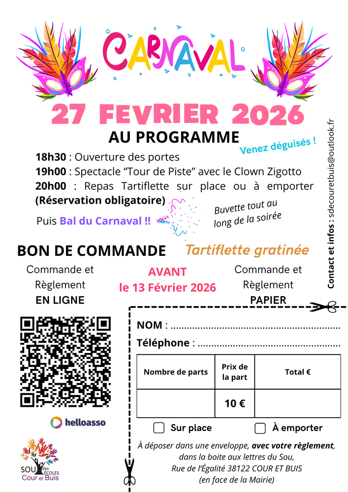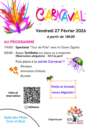Mardi 17 février à la salle socio-culturelle de COUR-ET-BUIS => Pensez à vous inscrire dès à présent