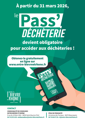 En effet, à partir du 31 mars 2026, le PASS'Déchèterie sera obligatoire pour accéder aux déchèteries de la Communauté de communes d'Entre Bièvre et Rhône.