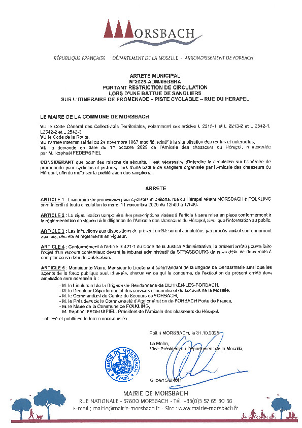 CONCERNE LE LOT COMMUNAL DE MORSBACH