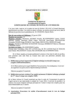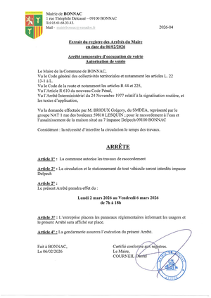 le secrétariat de Mairie sera exceptionnellement fermé mercredi le 25 février 2026.