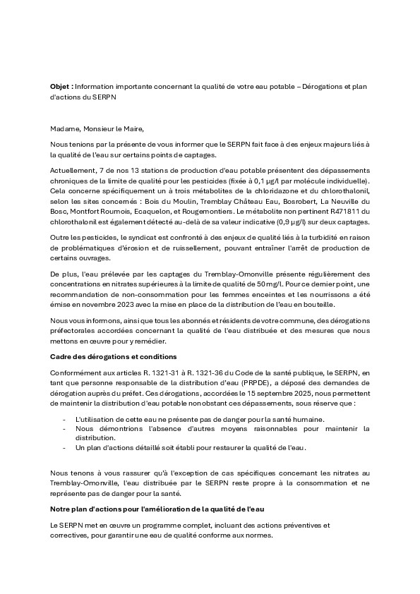 Découvrir les projets actuels et futurs du SERPN (Syndicat d'eau du Roumois et du plateau du Neubourg), qu'il s'agisse du traitement de l'eau, de la protection de la ressource ou de l'entretien du patrimoine.