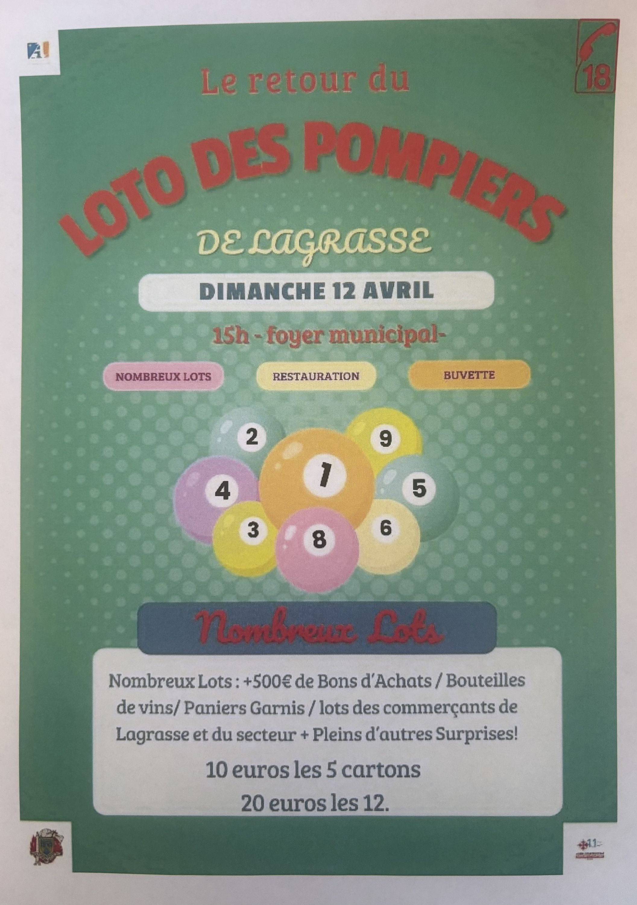 Le loto des pompiers de Lagrasse est annulé ce soir à cause de la météo.