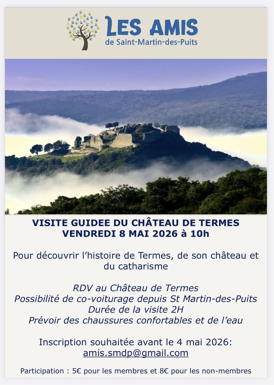 Le chef de cultures de la Pépinière de Lézignan-Corbières vous invite à venir participer à une visite guidée le 20 septembre 2024 : Rendez-vous à 9h00 devant la Mairie de Saint-Martin des Puits, le thème portera sur les jardins secs et les plantes méditerranéennes (durée 1h30 environ). Possibilité de co-voiturage.