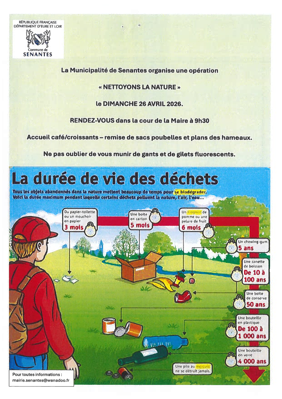 La municipalité organise une opération "Nettoyons la Nature" sur la commune de Senantes, le dimanche 26 avril.