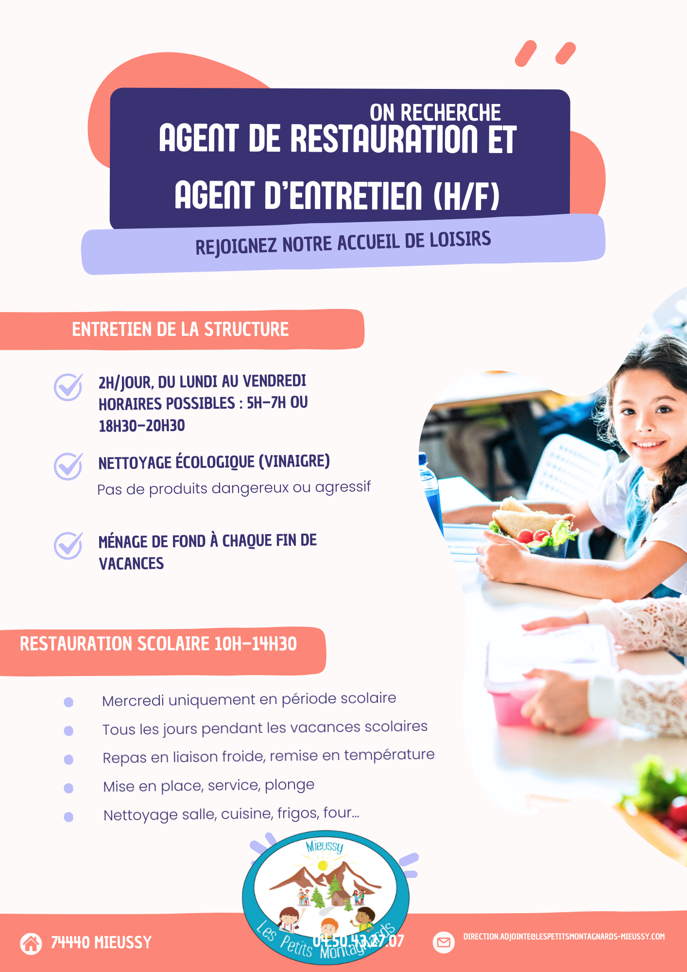 Poste : Agent de restauration / Agent d’entretien (H/F)