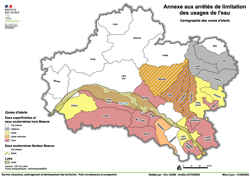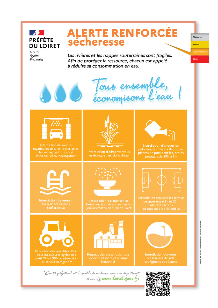 La préfète de la région Centre-Val de Loire et du Loiret met en œuvre des mesures de limitation de l'usage de l'eau sur le département du Loiret.